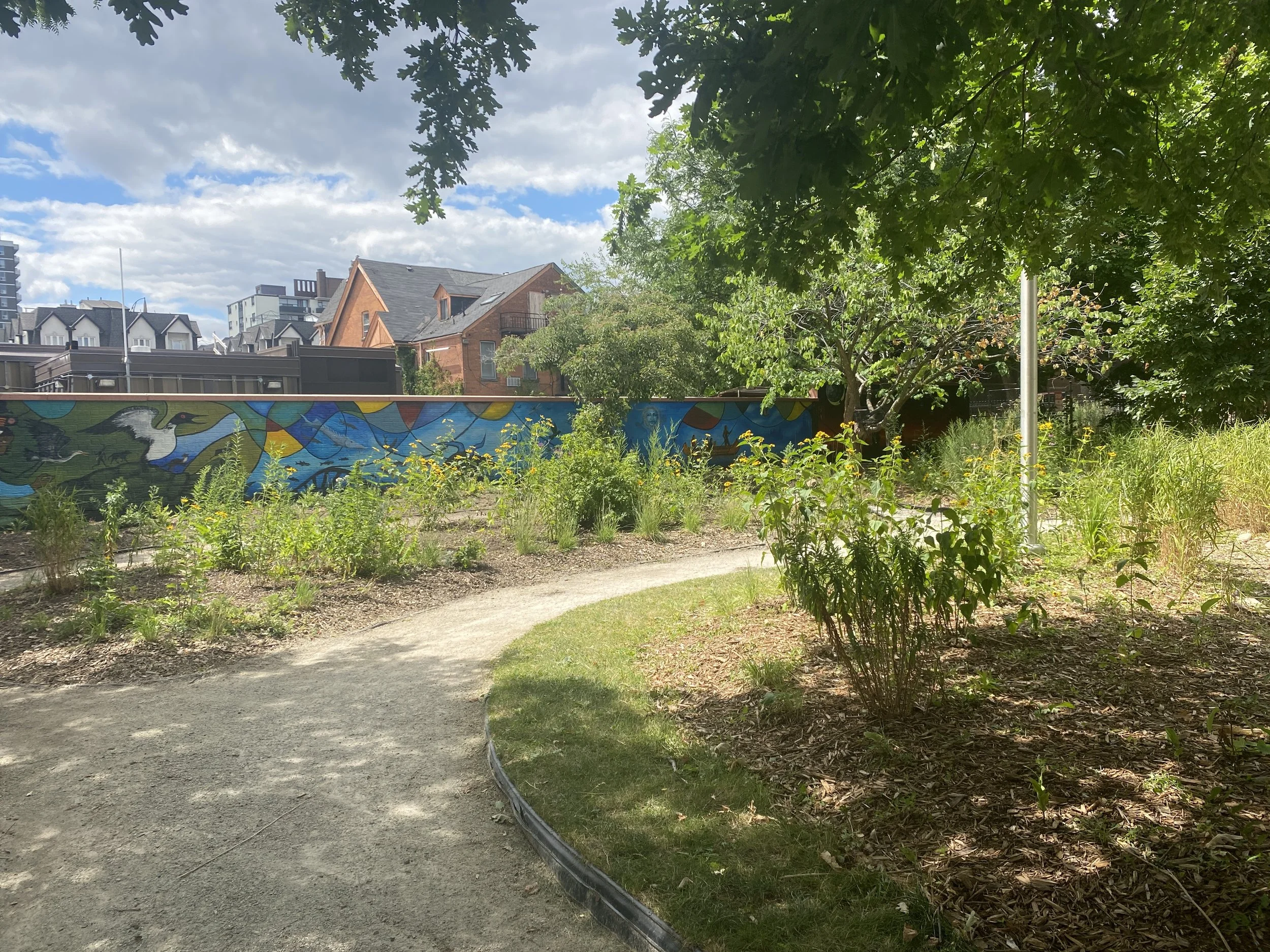AKI WIIDOOKAAGEWIN (Earth Helpers) are funded through Aboriginal Employment and Training programs. Our Learn to Garden program is now in its third year. In 2021 award-winning artist, Joseph Sagaj painted a mural in tribute to the Indigenous spirit underlying the restoration.